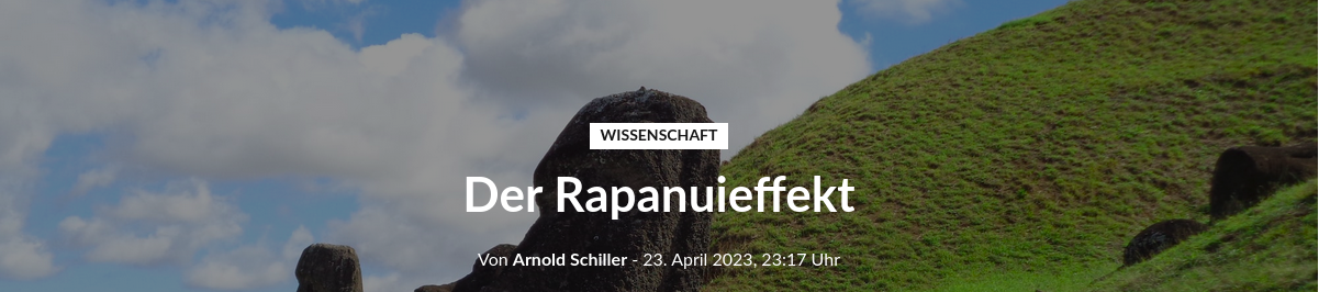 WeiterlesenDas Osterinselszenario für die Menschheit besagt, dass sich die Menschheit quasi selbst vernichten wird. Xi Jin Ping ist nicht der einzige der die chinesische Weltherrschaft will, sondern nur dessen Repräsentationsfigur jener Chinesen, die die Weltherrschaft anstreben. Die Mullahs wollen die Gottesherrschaft über die Welt und betrachten in ihrem religiösen Wahn jeden als Feind, der ihrem Allah nicht folgt. Alles unterschiedlich moderne Stämme, die sich zwangsläufig im Zielkonflikt befinden. Wenn die Erde die Osterinseln sind und wir die Rapa Nui beste Voraussetzungen also unterzugehen.
